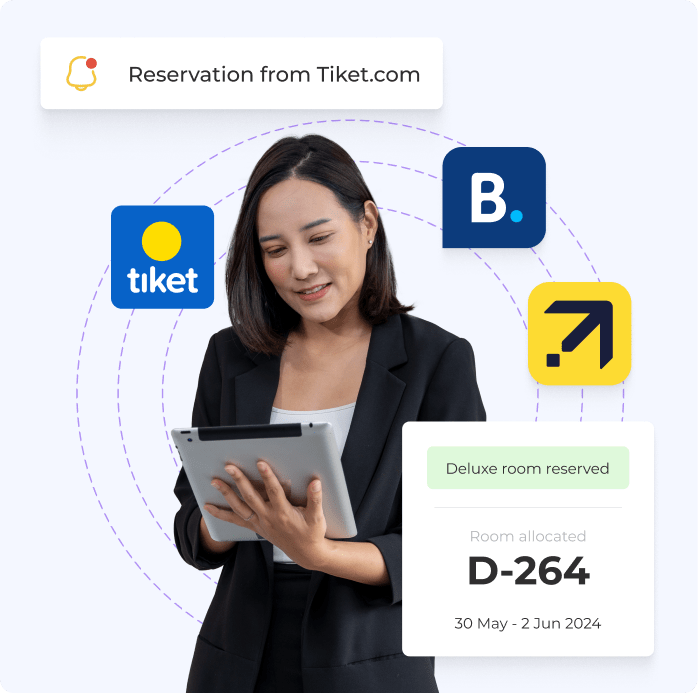Sync your account and listings on multiple marketplaces, including Booking.com, Tiket.com, and Expedia, on Bleustay. Save valuable time and effort with easy oversight from one convenient location.