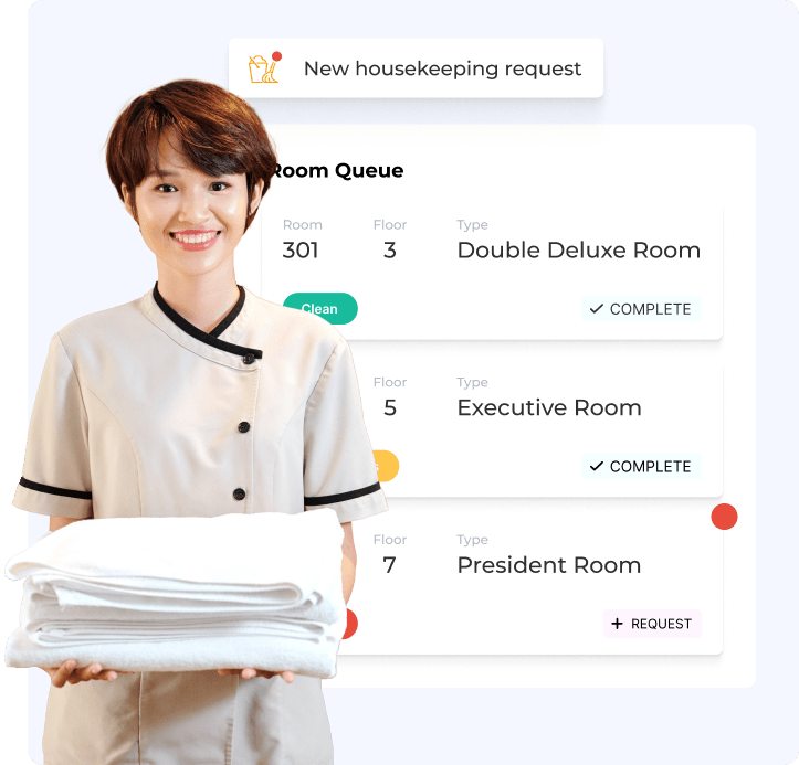 Easily manage guest reservations and service requests at the front desk with our user-friendly interface.