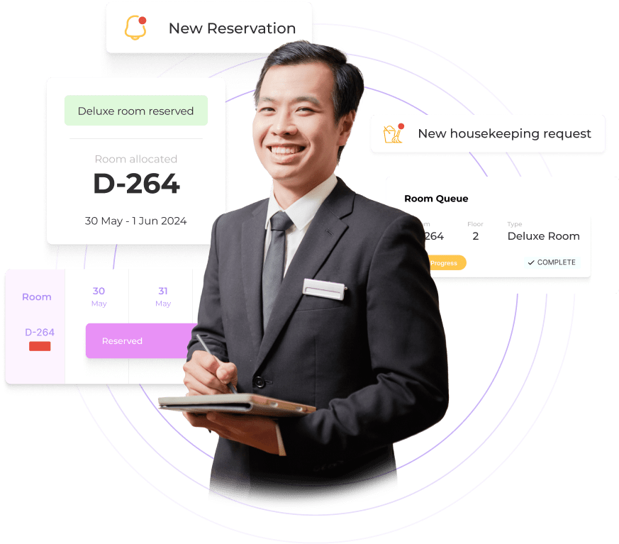Comprehensive solution for hotel and accommodation providers to maximize bookings and streamline day-to-day operations, from bookings to housekeeping and maintenance.